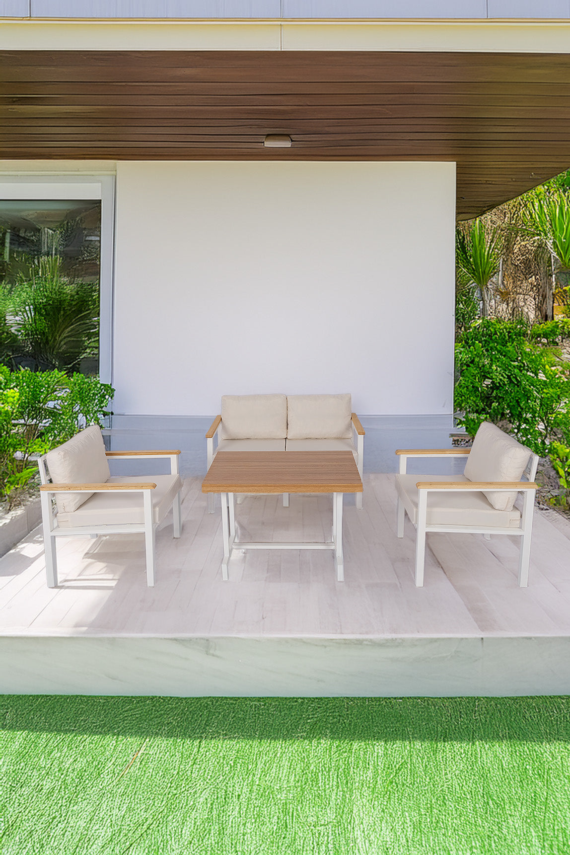 Bahçenize, balkonunuza veya terasınıza modern bir dokunuş katın! Tamamen metal profillerden üretilen bu bahçe mobilyası takımı, sağlam yapısı ve estetik tasarımıyla uzun yıllar keyifle kullanılabilir.